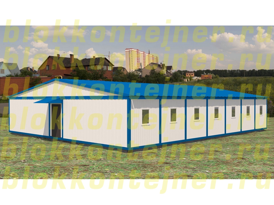 Модульное одноэтажное общежитие из 14 шт 6м блок-контейнеров, с коридором