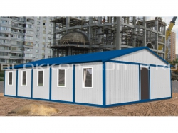 ГлавнаяПроектыМодульные здания → Общежитие модуль из 10-ти шт вагончиков с коридором 1м