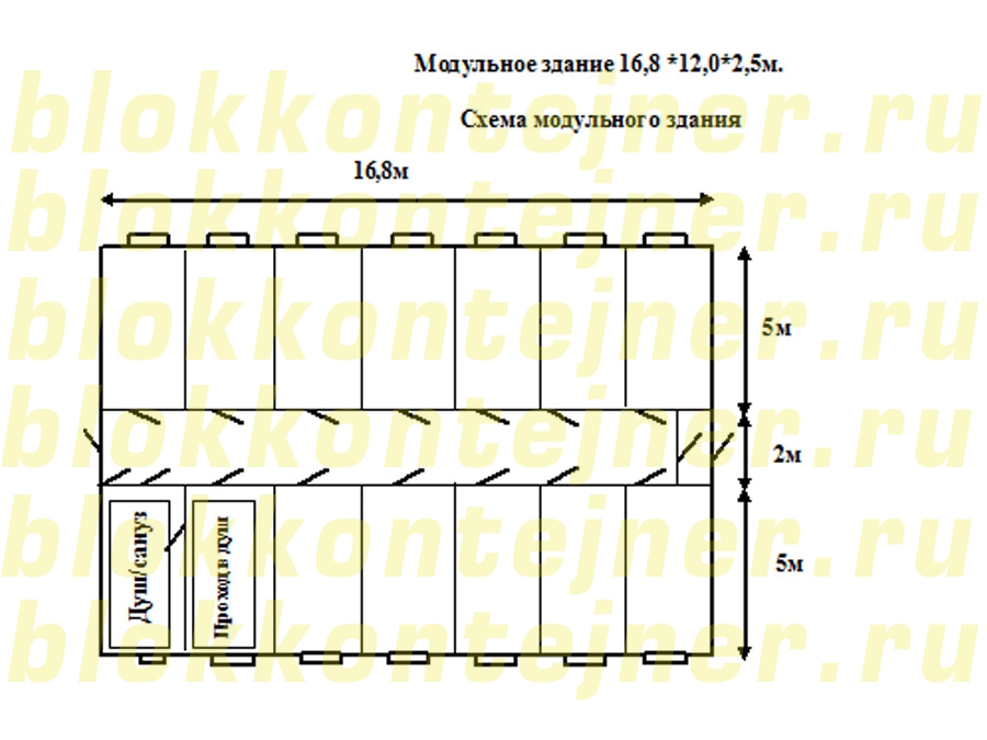 ГлавнаяПроектыМодульные здания → Модульное здание 16,8 *12,0*2,5м.